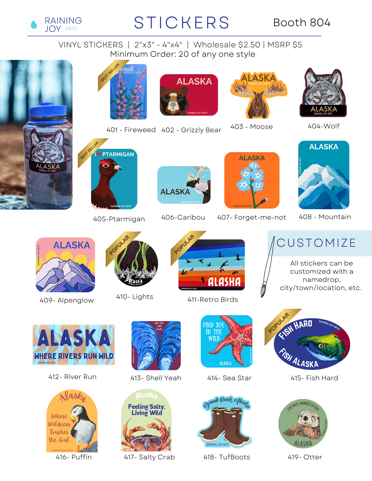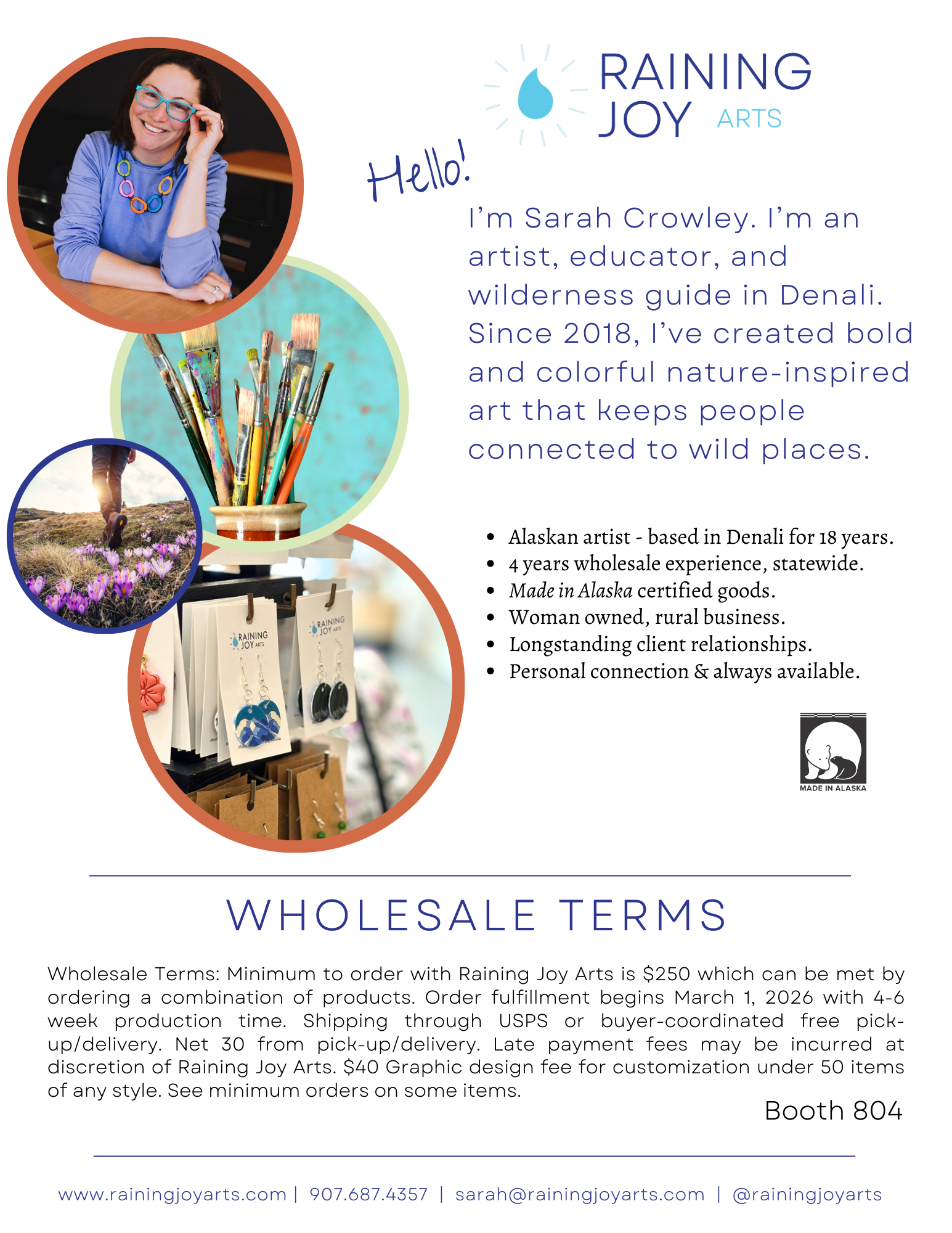 Use the Wholesale Line Sheet and Order Form below to find all of the items available from Raining Joy Arts at wholesale prices. You must be a current wholesale client to be eligible for wholesale prices.